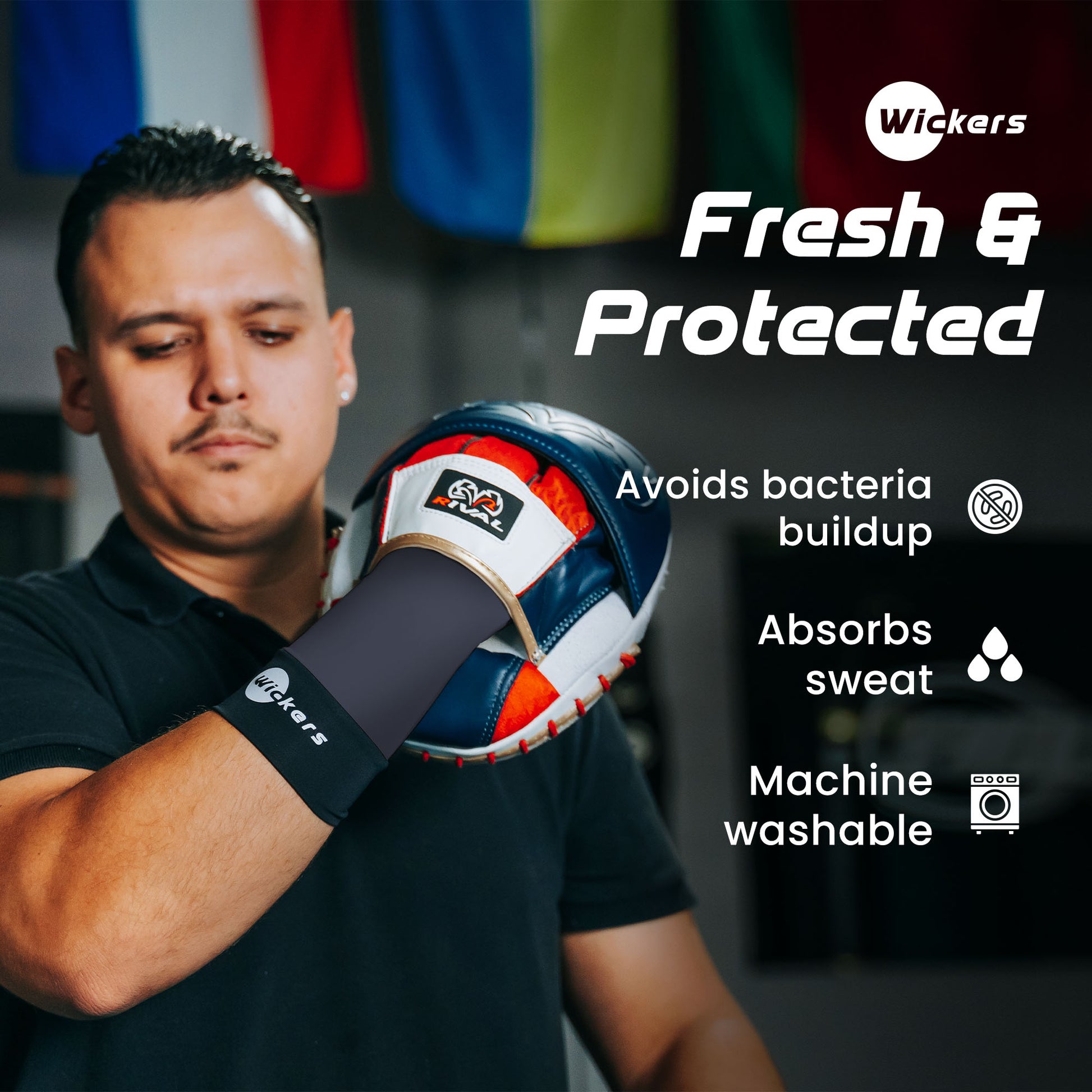 We want athletes to be able to train the way they want, without the risks associated with bacteria and virus accumulation. Wickers are glove liners, made from a spandex-polyester blend. They are designed to absorb sweat and intended to be washed between uses to avoid the accumulation of harmful germs.