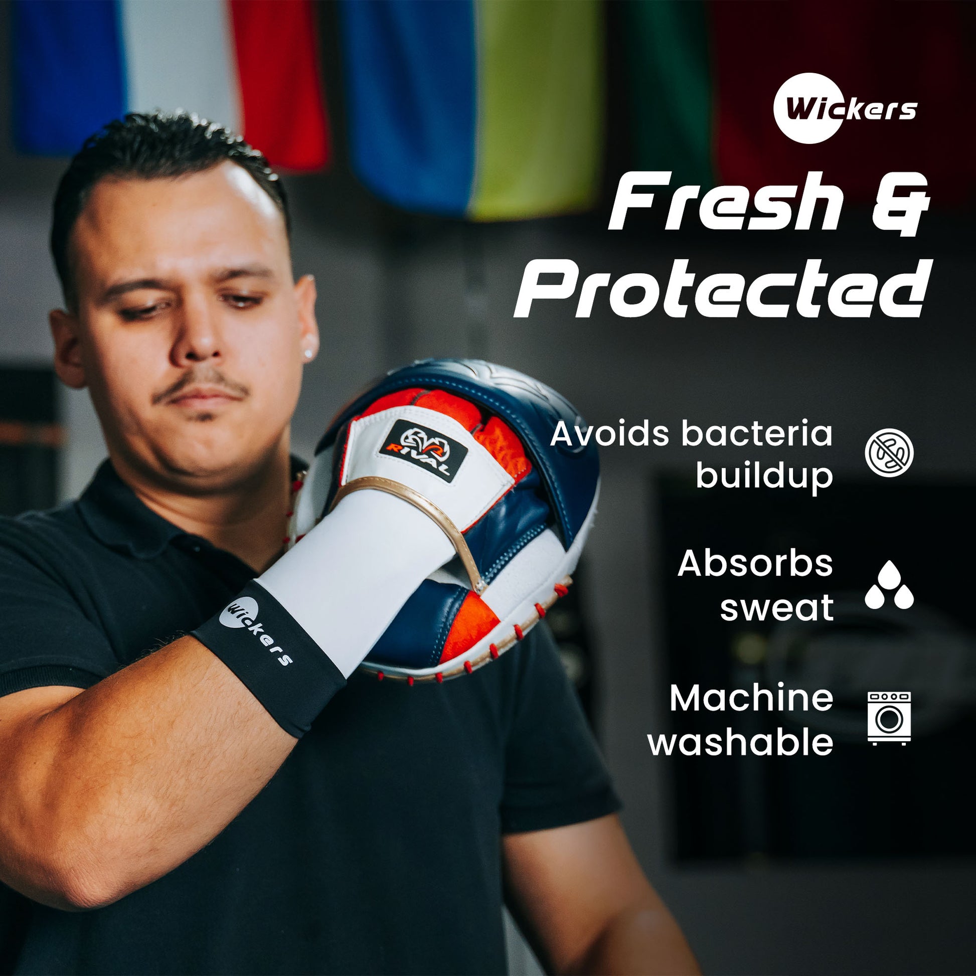 We want athletes to be able to train the way they want, without the risks associated with bacteria and virus accumulation. Wickers are glove liners, made from a spandex-polyester blend. They are designed to absorb sweat and intended to be washed between uses to avoid the accumulation of harmful germs.