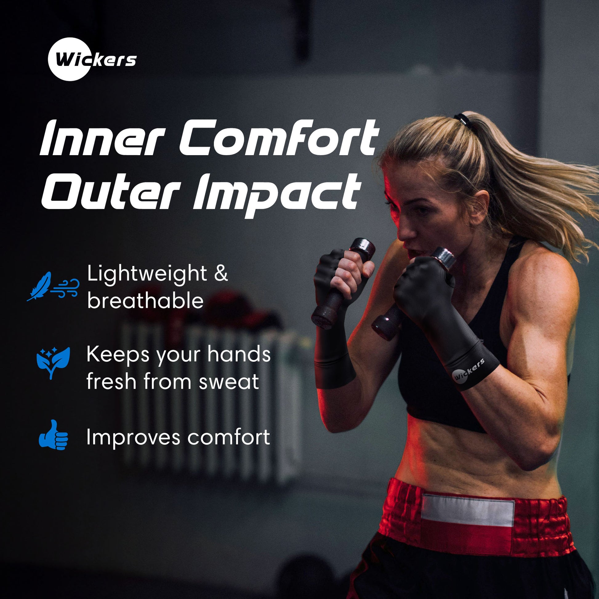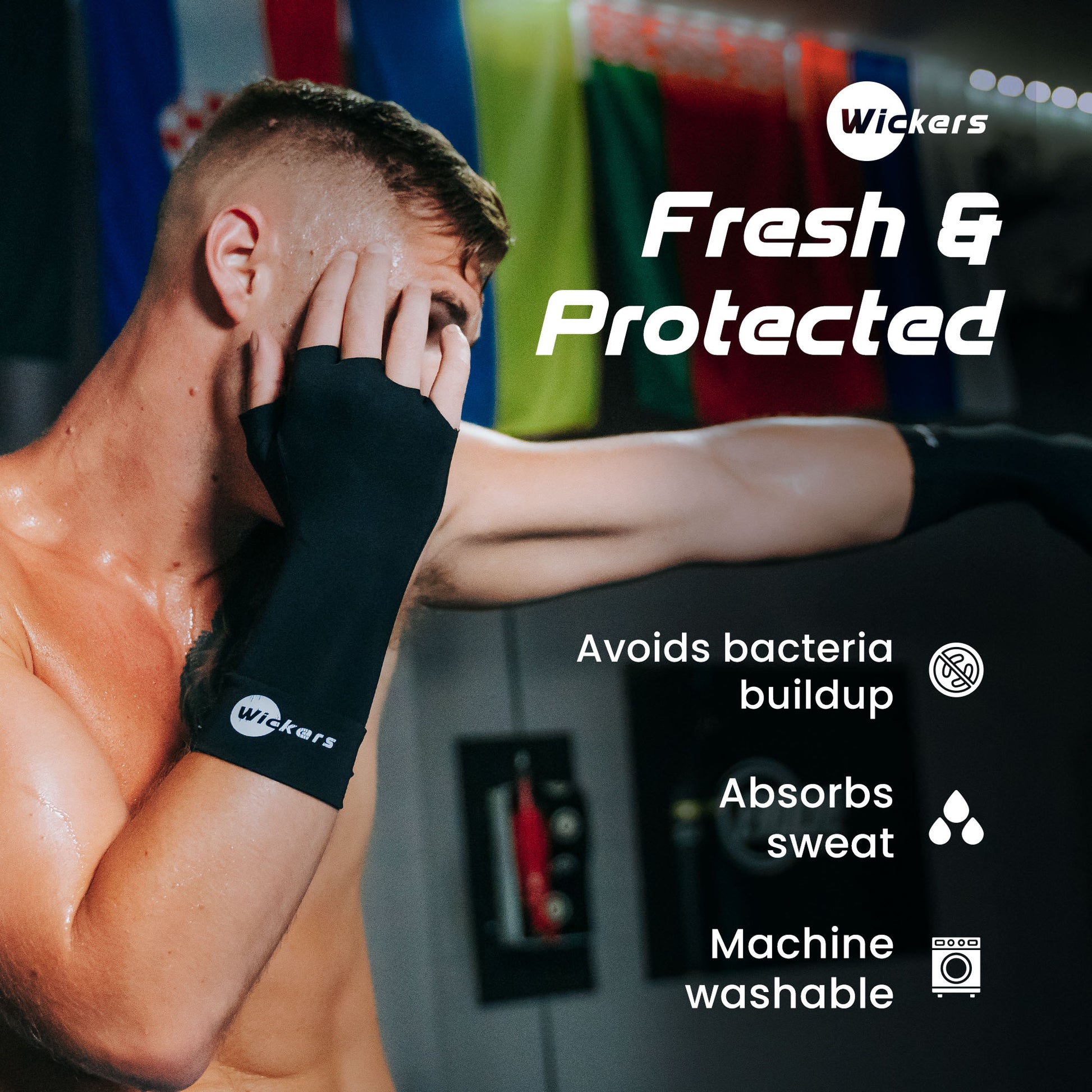 We want athletes to be able to train the way they want, without the risks associated with bacteria and virus accumulation. Wickers are glove liners, made from a spandex-polyester blend. They are designed to absorb sweat and intended to be washed between uses to avoid the accumulation of harmful germs.